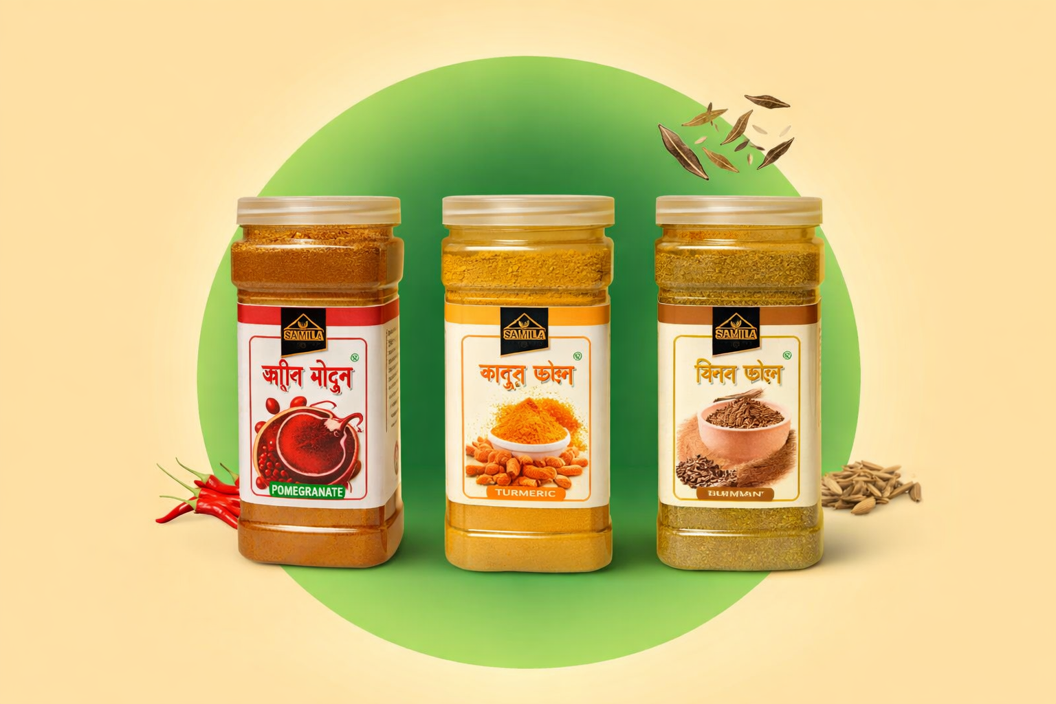 খাঁটি গুঁড়া মসলা – মরিচ, হলুদ ও জিরা